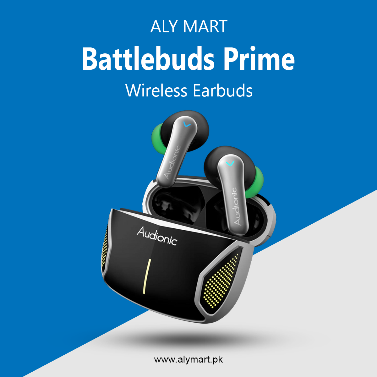 Audionic Battlebuds Prime Earbuds | 50 Hours Playtime. Audionic’s Battalbuds Prime wireless earbuds have entered the Pakistani market. A 13mm sound driver is provided to deliver a deep bass effect. Gaming mode has a 45-second low latency. 40mAh earbuds and a 400mAh case battery are given. These earbuds are fully charged in 30 to 45 minutes.