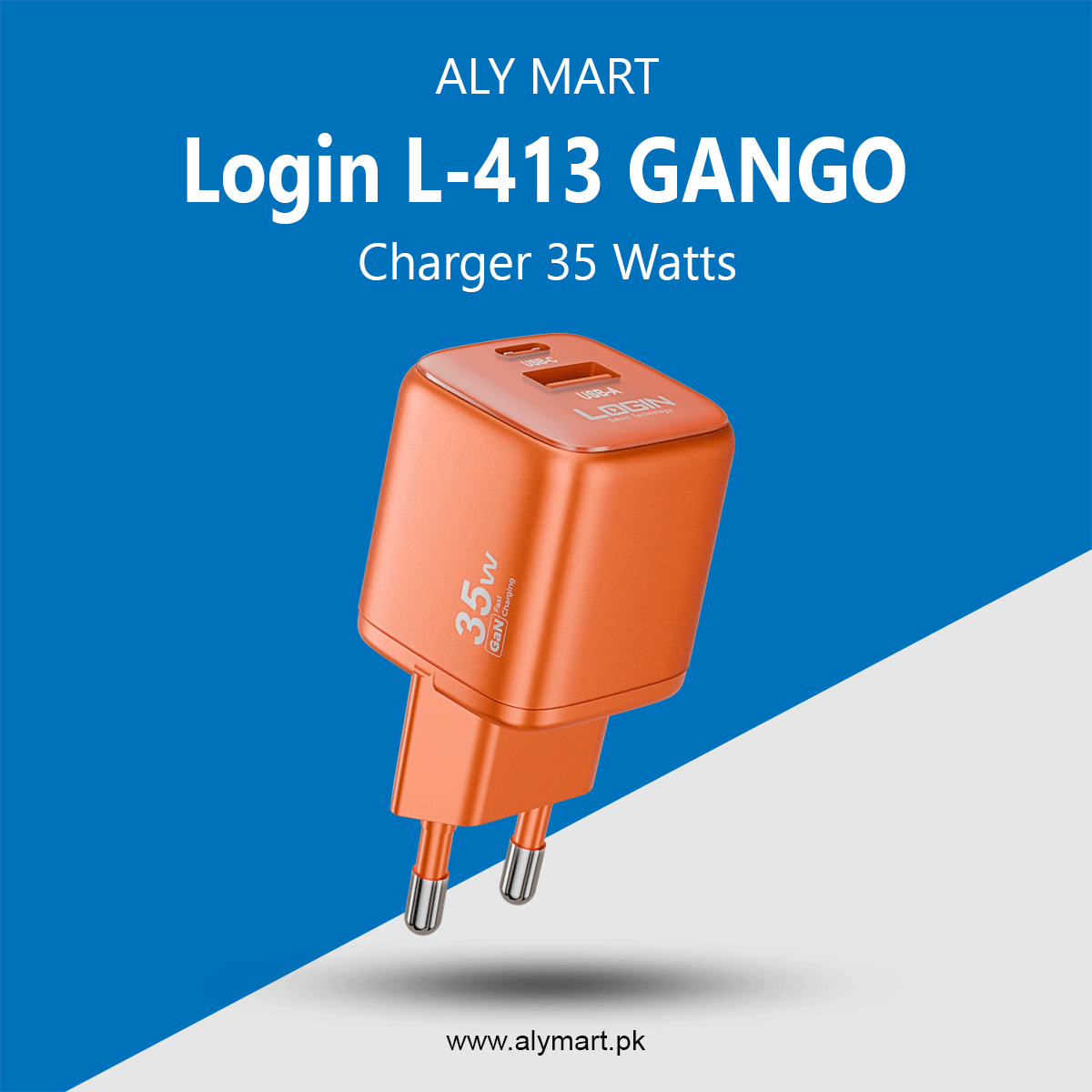 Login L-413 GANGO Charger 35 Watts | USB-A & PD: The login company has introduced a charger called the L-413 Gango. It is built in a compact design that provides fast charging at 35 watts. Made in ABS premium PC+UV body coating. It is compatible with Samsung, iPhone, Huawei, Honor, Oppo, Realme, Xiaomi, Vivo, Tecno, Infinix, OnePlus, Other Smartphones, Tablets, Earbuds and other USB and PD powered devices.