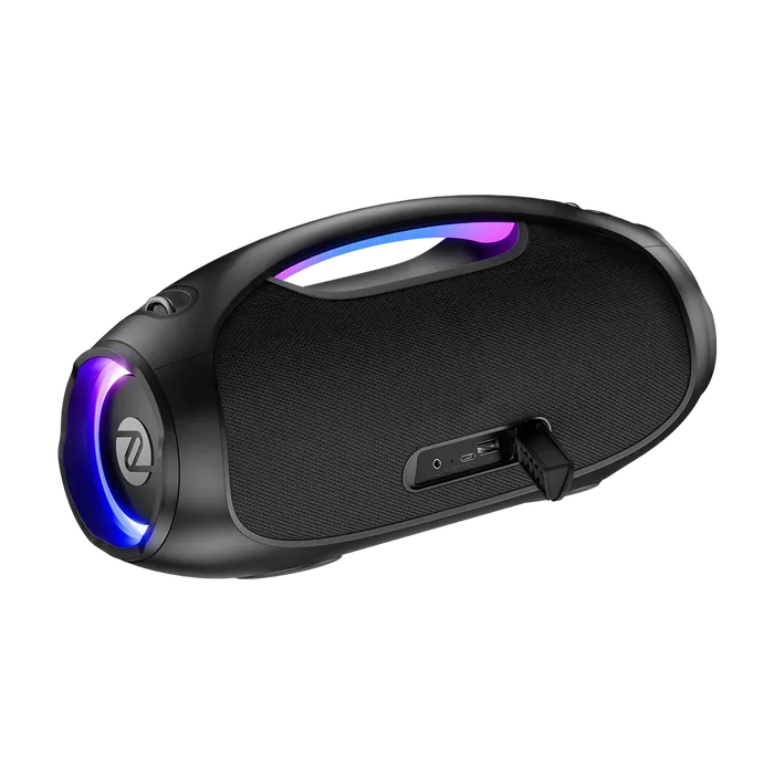 It is designed for music lovers who want loud and clear audio sound. This speaker includes RGB lights that pulse with the beat of the music to enhance the atmosphere and make it enjoyable. It is perfect for indoor events and outdoor gatherings, etc. They come with a handle and shoulder strap, making it easy to carry to a party. A Zero Thunder Pro speaker that delivers 120 watts of powerful and loud sound, which is perfect for any event.